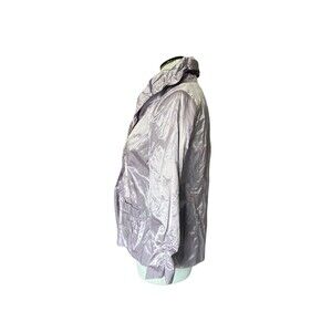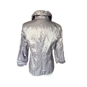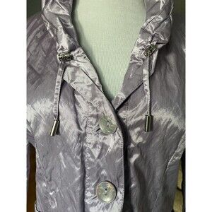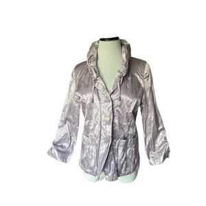 Chicos Metallic Ruffle Collar Jacket Size M Lavender Shimmery Crinkle Statement