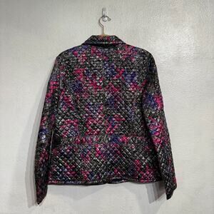 Large silver, pink, black, purple and blue jacket by Chico's in excellent preowned condition.