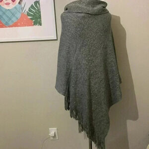 Chico’s Metallic Shine Fringe High-Neck Poncho
