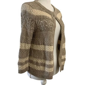 Metallic Silver And Tan Striped Chunky Chicos Sweater Shrug Size 0 Cotton Blend.