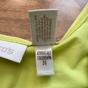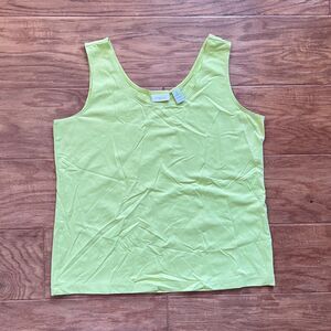 Chicos Microfeel Timeless Scoop Neck Layering Tank Top in Lime Green. Chico's Size 2 (Regular Size L/12). 92% nylon, 8% spandex. There are a couple small marks on the front.