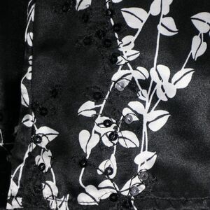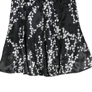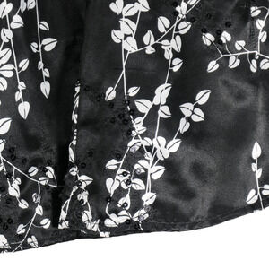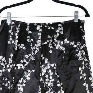 Chicos Midi Skirt A Line Womens Size 1M Satin Sequins Lined Black White Floral
