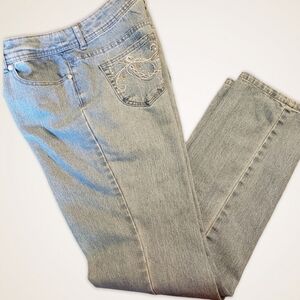 Chico's Midrise Jeans Embellished Pocket Light Wash EUC