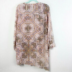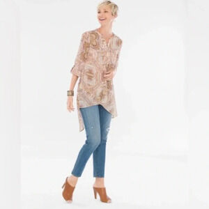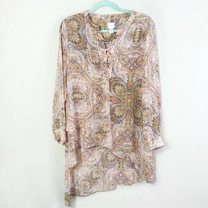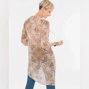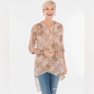 Chico’s Mirrored Beauty Lace-Up Top Tunic Paisley asymmetrical 3/4 sleeves SZ US M/ 8