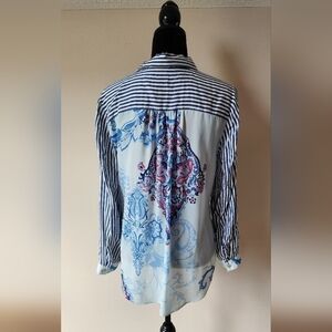 Chico's Mix Print Medallion Scrolls Print Multi-Color long sleeve shirt sz 8/10