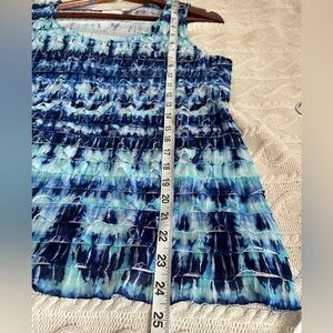 EUC excellent condition & quality! Beautiful mix of blue colors, sleeveless blouse by Chico’s. Polyester & spandex blend. Small horizontal tiers of ruffle. Beautiful textured top. Measurements in photos. Chico’s conversion chart in photos. Women’s size medium. (Chico’s size 1) smoke free home