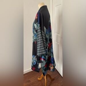 Chicos Mixed Floral Print Kimono Satiny Artsy Boho Unique Loose Flowy L / XL