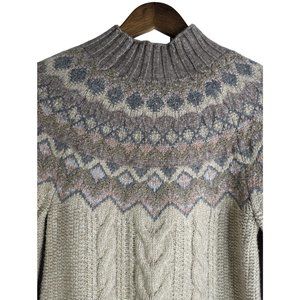 Chico's Mock Neck Cable Knit Yarn Pullover Sweater Textural Yarn Cozy sz 0 S
