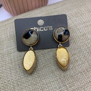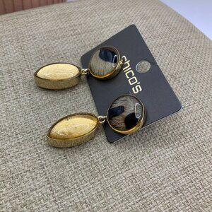 Chico's Modern Animal Print Black Gold Tone Dangle Stud Earrings