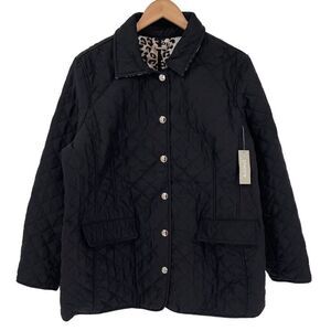 Chico's Modern Quilted Jacket Animal Print Lined Women 3 / XL Black Pockets NWT
