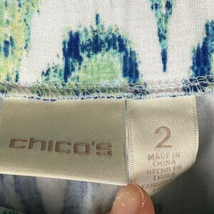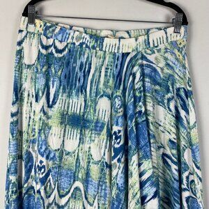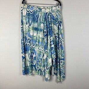 Chicos Molly Ikat Midi Skirt Womens 2 US Large Pull On Asymmetric Blue Green