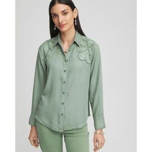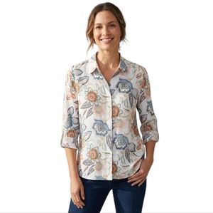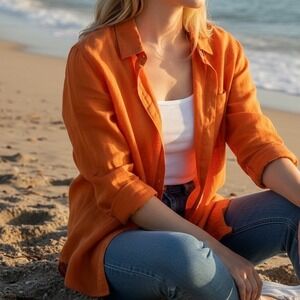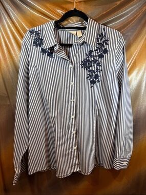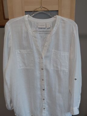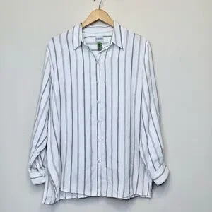 Chico's | Monterey Stripe Islander Linen Button Down Relaxed Casual Shirt