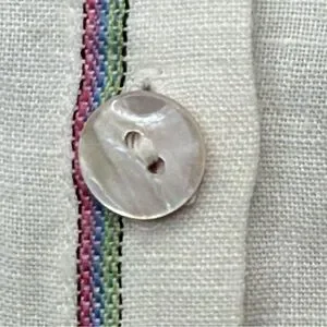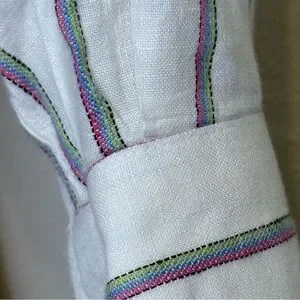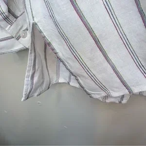 Chico’s Monterey Stripe Islander Rainbow Striped Linen Roll Tab Long Sleeves Side Slits Relaxed Oversized Button Front Shirt Top