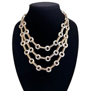 Chico's Mother of Pearl Multi-strand Gold Textured Link Statement Necklace