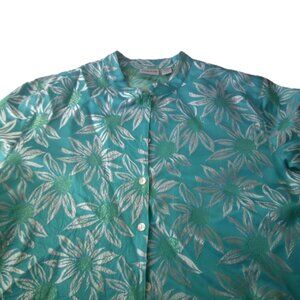 Chicos Mother of the Bride Floral Print Turquoise Silk Blend Jacket Top SZ 3