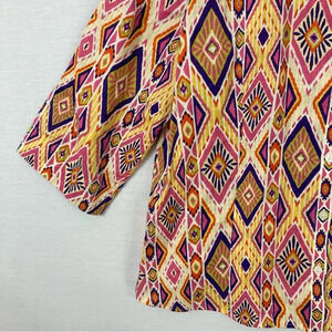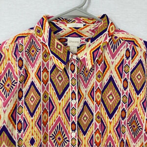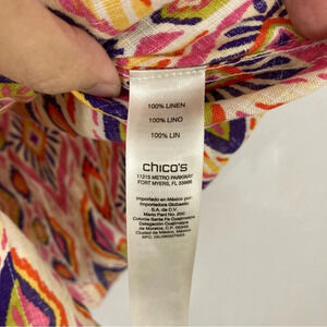 Chico's Multi Color Abstract No Iron 100% Linen Button Down XL 3