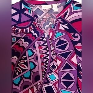 Chico's - Multi Colored Abstract Blouse, 3/4 Bell Sleeves, Size 1, V-neck,