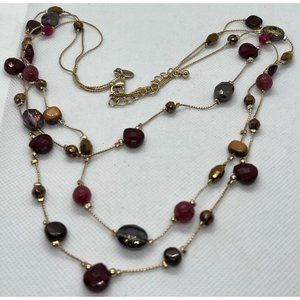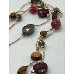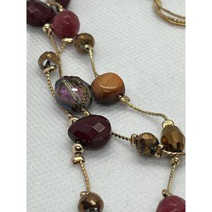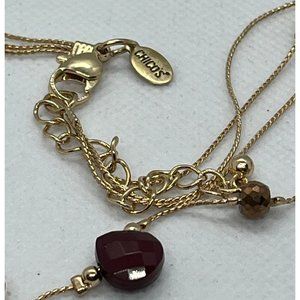 Chico's Multi Colored Gemstone Beaded 3 Strand Layered Gold Tone Necklace New