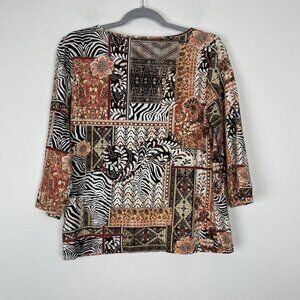 Chicos Multi Colored Square Neck Multi Print Floral Animal Size 1 (medium)