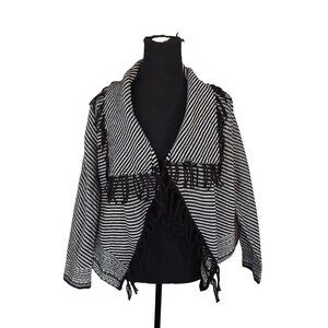 Chico's Multi Print Jacquard Cardigan Fringe Aztec Long Sleeve Size 1 Classic