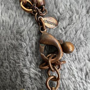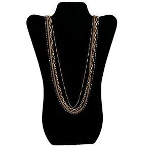 Chico's multi strand necklace in gold tones and black. 4 different types of chains. Good condition. Measures approx 37" long.