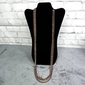 Chicos Multi Strand Necklace Mixed Chains Gold Black Tone Beads 37 inch