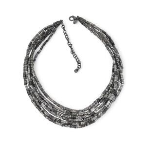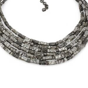 Chicos Multi Strand Necklace Square Silver Tone Beads