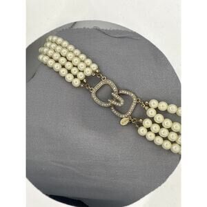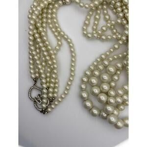 Chicos Multi Strand Pearl Tone Necklace w/ Crystal Bars Statement 38”
