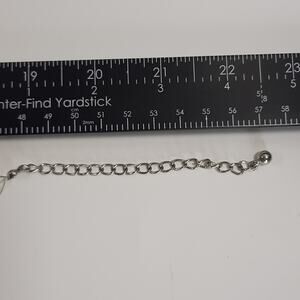 Chico's Multi-Strand "Invisible" Statement Necklace with Stone Beads. Natural variegated stone beads mixed with glass and acrylic beads in various shapes. Silver and grey are the predominate colors. Strung on plastic coated wire. See pics for measurements. Preowned excellent condition with some discoloring of the wire near the clasp. See pics. This won't be visible during wear as it is near the back of the neck. from a non-smoking home.