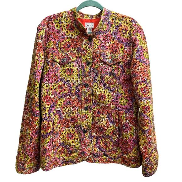 Chico's Multicolor Eyelet Cotton Blazer 3 Women's Size 16 XL Jacket