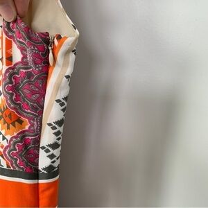 Beautiful colors and design, side zipper, fully lined, high neck, ties at the neck in back, great condition! Perfect to wear to a wedding or summer party/gathering
