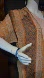 Chico's blouse with intricate patterns. Features shades of orange, cream, and black. Lightweight and stylish.
