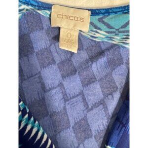 Chico's Size "0" = Size 4. Super Cute for Spring and Summer. Excellent condition. Front is approximately 44" and the back is approximately 53". Polyester/Spandex. Hand wash and Line dry.