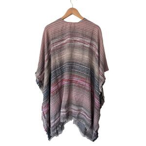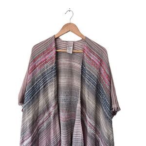 Chico's Multicolored Striped Metallic Viscose poncho O/S Western boho fringe
