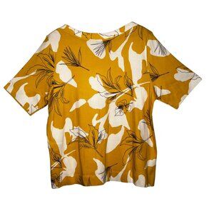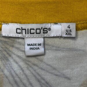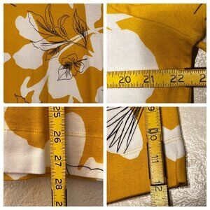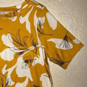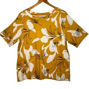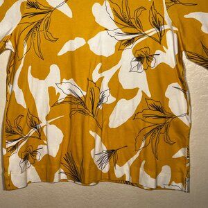 Chicos Mustard Yellow White Floral Short Sleeve Size XXL (4) 100% Pima Cotton
