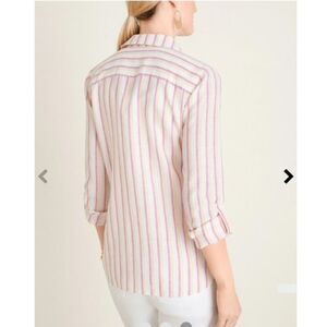 Chico's NO-IRON Linen Metallic Striped Roll-Tab Shirt Button Down Linen Size 2