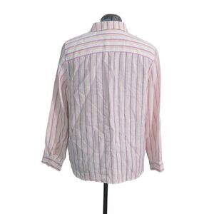 Linen Metallic Striped Roll-Tab Shirt Button Down Linen Size 2 (12/14)