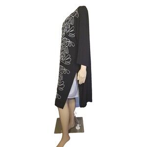 Chicos NWT Black French Knot Embroidered Kimono S/M Ruana Jacket Duster T53