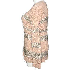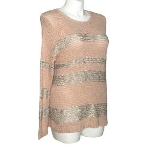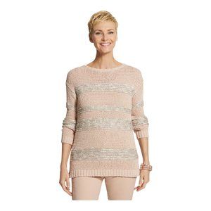 Chico’s NWT Marley Pullover Sweater, Pink Silver Sparkle Stripe Women's 2 (L)