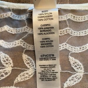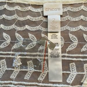 Chico’s NWT Sheer Embroidered Beaded Cream V-Neck Blouse