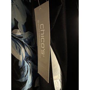 This Chico’s NWT size 1 (M) top combines comfort and style. Its navy blue floral print and crossover drape design make it a unique addition to any wardrobe. It features long sleeves and is made from soft, breathable rayon. Comes from a smoke free home