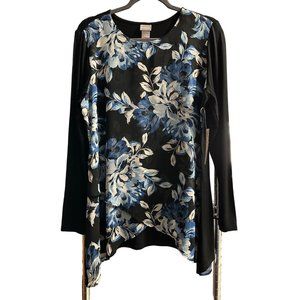 Chico’s NWT size 1 (M) navy blue floral print crossover drape long sleeve top