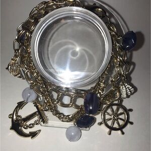Chicos Nautical Multi Strand Charm Bracelet Beads Gold 3 Multi Style Chains