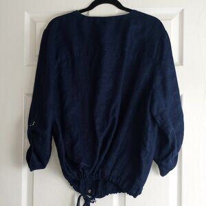Chico's Navy Blue 100% Linen Utility 3/4 Sleeve Jacket