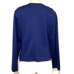 Chico's Navy Blue Blazer Jacket Gold Buttons Stitching Hook Front