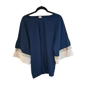 Chico's Navy Blue Crew Neck Metallic Blocked Dolman Sleeve Tunic Top Woman 0 Sm