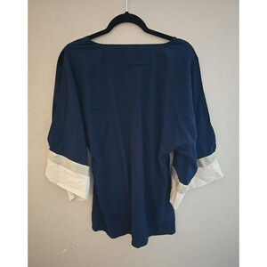 Chico's Navy Blue Crew Neck Metallic Blocked Dolman Sleeve Tunic Top Woman 0 Small. Pre-owned.
