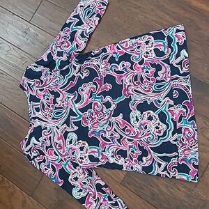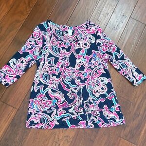 Chico's Navy Blue & Multicolor Paisley Blouse size 2 (Large)