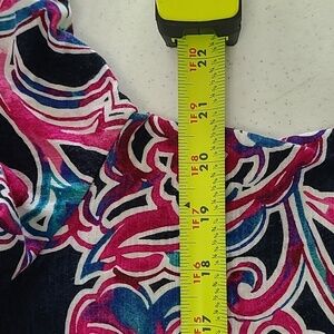 Chico's Navy Blue & Multicolor Paisley Blouse size 2 (Large). Features 3/4 sleeves & asymmetrical/ruffle hemline in the front.