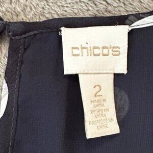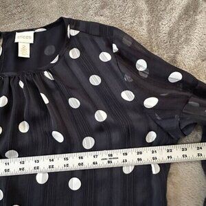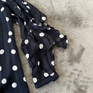Chico's Navy Blue Polka Dot Chiffon Blouse Ruffle Sleeve Women's 2 US Large 12